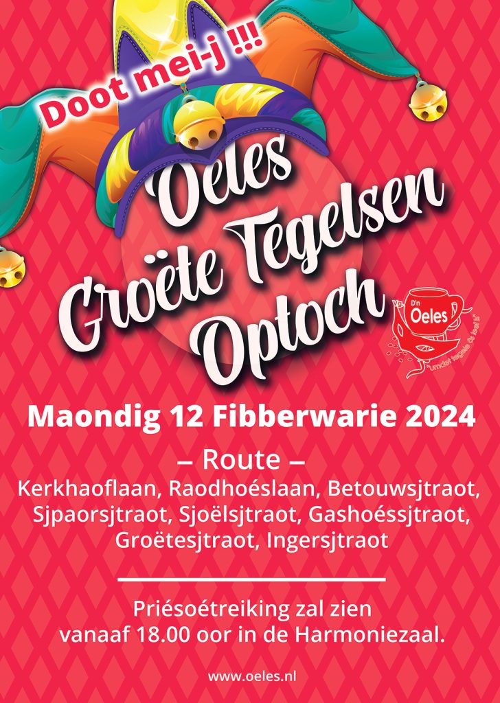 D’n elfde van d’n elfde ligk inmiddels achter ôs en Sinterklaos is bekans in ‘t langk. Dees periode is dök auch ‘t sjtartsein um de veurbereidinge op te sjtarte vur d’n Tegelsen optoch. In 2024 sjteit deze op maondaág 12 fibbewarie op ‘t pergram. De optochtkemmissie van Vastelaovesgezelsjap D’n Oeles haet aevel neet sjtil gezaete […]
